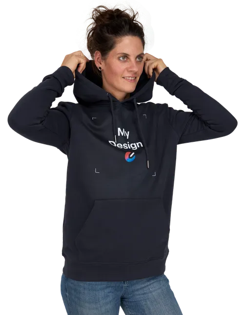 The hoodie can be printed on the chest and back.