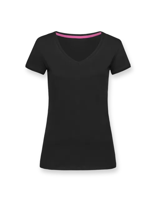 The women’s T-shirt features a wide V-Neck and slim fit. The athletic yet relaxed cut offers a sporty look.